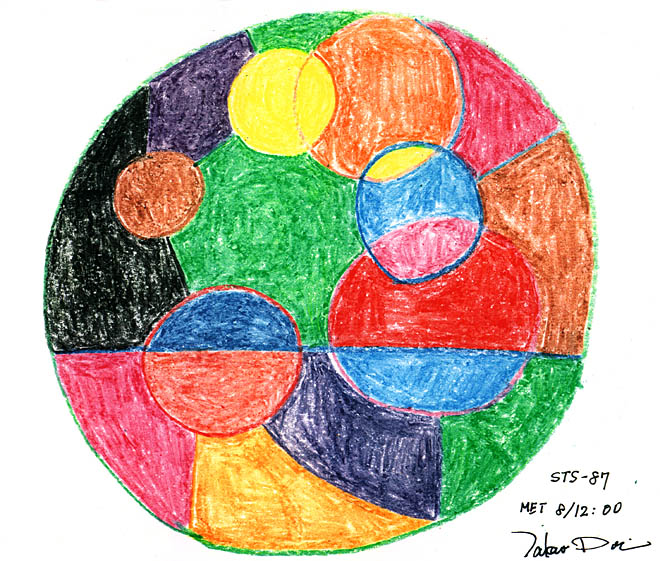今回の芸術ミッションでは、われわれの実験提案のうち、2-A.「点・線・面:微小重力下における宇宙絵画の基礎実験」が条件を変えて採用されることが事前に通知された。しかし周知の通り、STS-87ミッションにおける「日本人初の船外活動」は、太陽観測衛星スパルタンの作動不良と船外活動による回収という不測の事態により、予期せぬ展開をとげた。