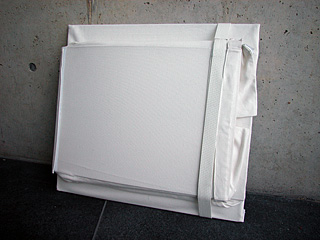 | 微小重力体験飛行での実験に用いた段ボール箱によって得られた感覚を再現することを念頭に、実験に用いた段ボール箱と同じサイズ(W360mm x D540mm x H500mm)、同じ形状(左右の上蓋が外に開いた状態の箱形)とした。 実験に用いた段ボール箱と同等の強度、形態保持性があること、可搬性、収納性に優れ、かつ組み立てが容易である点に考慮し、各面がポケット状になっている帆布製の箱の各ポケットに芯となるポリカーボネートプレートを差し入れて組み立てる方式を選択した。 なお、実験に用いたダンボール箱は4枚のプレートが組み合わさった底面形状であったが、変更による影響がないと思われたのでプレート1枚の底面形状に簡素化した。また、実験に用いた段ボール箱の形状のうち、上面左右部分のプレートは両腕のホールドに用いられる可能性があったので残し、前後のプレートは省略した。 素材: ポリカーボネート (厚さ 3mm) 帆布 ベルクロテープ サイズ: W360mm x D540mm x H500mm 収納時: 底面および前後側面のポリカーボネートプレートはあらかじめ差し込んだ状態で折り畳んでおく。 左右側面および上左右面のポリカーボネートプレートは収納用別袋に収納。 折り畳んだ状態の本体と収納用別袋はベルクロテープおよびベルトで固定。 組み立て: 1. 本体左右側面のポケットの上蓋(ベルクロテープ)を開く。 収納用別袋からポリカーボネートプレートを取り出し、ポケットに差し入れる。 ポケットの上蓋(ベルクロテープ)を閉じる。 2. 本体上左右面のポケットの上蓋(ベルクロテープ)を開く。 収納用別袋からポリカーボネートプレートを取り出し、ポケットに差し入れる。 ポケットの上蓋(ベルクロテープ)を閉じる。 3. ベルトは、本体が組み立てられた後、取り付ける位置を付け替えることで簡易グリップとなる。 * これらの作業は複数で行った方がよい。 使用時: 両膝を立てた状態で、箱にしゃがみ込む。(体育座り) 箱の内壁に体を押しつけ密着させる。箱の内側から体でテンションをかけるイメージで姿勢を安定させる。 両腕は、上左右面のプレートをワキに抱える体勢、ベルトの簡易グリップを握る、あるいはフリー。 留意点: 縫製の強度の問題や、組み立て方式も含む構造の改善などが考えられる。また、使用者の体格に合わせたサイズを用意する必要がある。 |