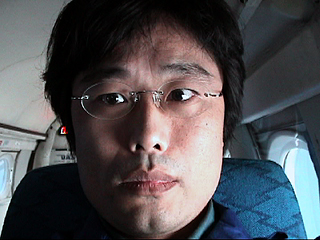 | [ 実験内容 ] μG状態への移行時における体液の上半身への移動にともなう顔面の変形を記録する。片手にビデオをもって自ら撮影。 [ 使用した材料 ] デジタルビデオカメラ [ 実験結果 ] 実験時、A-4で使用する大きな風船を機内で膨らませて身体で抱えていたため、シートベルトが着用できず、μG状態に移行する際に身体全体が座席からうきあがり、大きな緊張を強いられた。顔面に心理的不安感が表出され、紅潮しているものの、膨張は予想したほど顕著に認められなかった。μG状態では物体の固定がいかに大切かが実感できた。 - QuickTime Movie: 顔面撮影 (6,446K) >> (下) 撮影ビデオより 上段左: 通常Gの状態 上段右: μG移行直後 / 下段左: μG状態 下段右: 通常G復帰後 実施者: 井上明彦 撮影: 井上明彦 2001.11.15 |