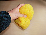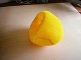 | KOKORO PROJECTにおいて、JEM保管庫内に持ち込む「心の場」のための伸縮自在な素材を試用した予備的実験。 (1/8 サイズ、楕円体カプセル状の模型による) (下) 1/8 サイズ、楕円体カプセル状の模型 |