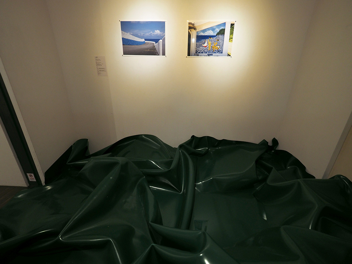 壁面の2点の写真『パラレル』は、台湾南東部の蘭嶼(らんゆう)島の海辺につくられた放射性廃棄物貯蔵所付近の風景であり、それぞれ水平線が強調されている。一つは太平洋のリアルな水平線であり、他方はこの島の原住民であるタオ族が描かれたペンキ絵の中の水平線である。台湾本土から離れた蘭嶼島には、1982年に台湾電力の原発の放射性廃棄物の貯蔵所がつくられた。