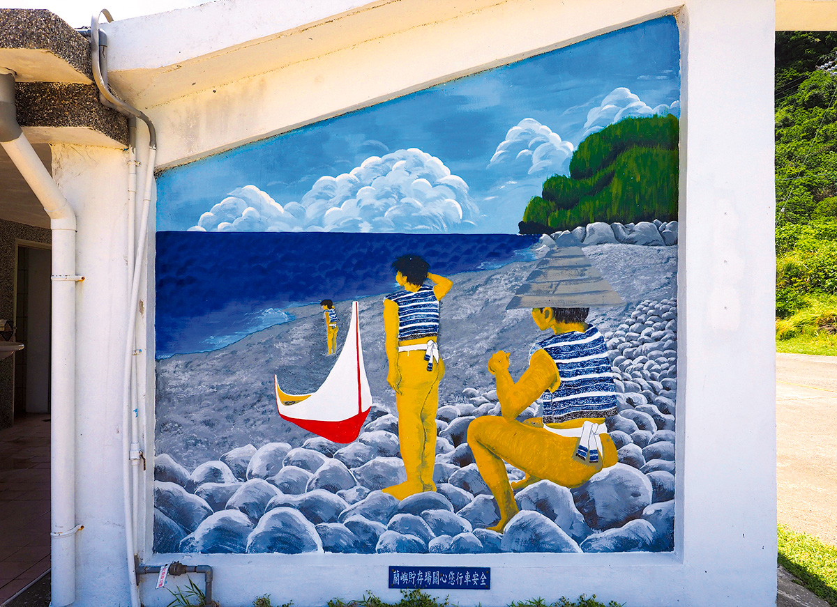 And on the wall, two photographs of see-scapes of the nuclear waste storage facility at Lanyu Island of southeastern Taiwan. Lanyu Island or Orchid Island is land of the Tao aborigines, so also called "Ponso No Tao" and in 1982, Taiwan Power Company built the nuclear waste plant at the southern tip of this remote island. In the photograph, there are two horizons, real one and painted one on the wall of the restroom.